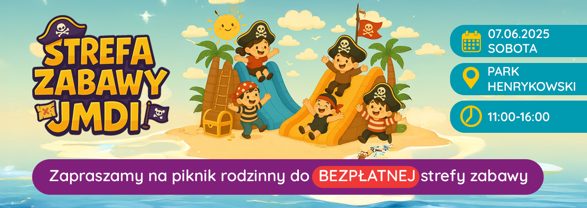 Już w najbliższą sobotę Park Henrykowski zamieni się w kolorową przestrzeń radości i wspólnej zabawy! Zapraszamy Was i Wasze pociechy do Strefy zabawy JMDI, gdzie czeka mnóstwo atrakcji dla dzieci oraz chwila relaksu dla dorosłych.